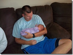 Little Brooke, all relaxed and happy. I love the clothes! I’m discovering that girl clothes are incredibly fun. She is getting so big, and fast! I have a feeling she may be taking Shaun’s big, tall genes. By the second week, she already was to big for newborn onesies. Wow.